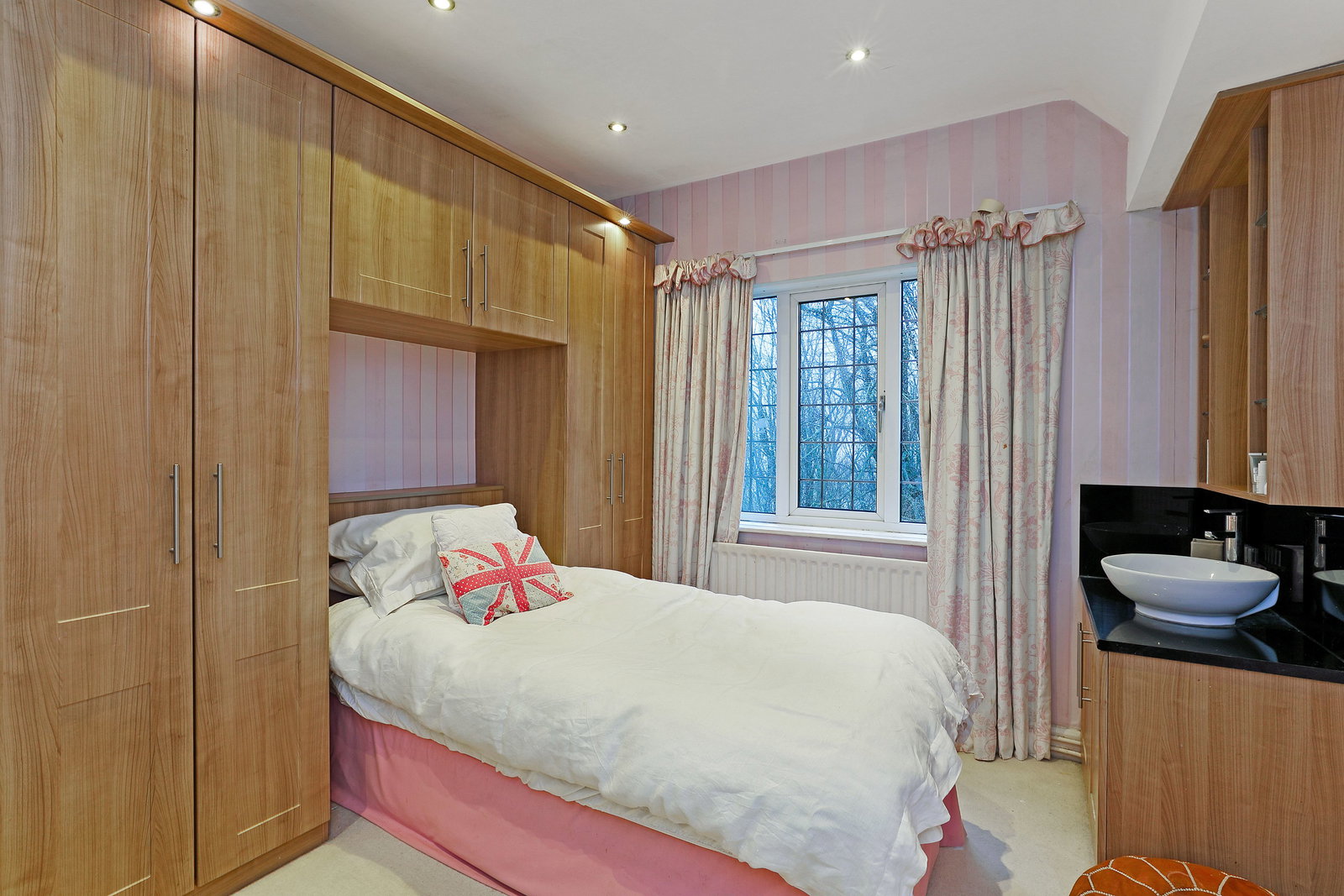 Bedroom Four is a double room, again with fitted wardrobes and a front-facing aspect.