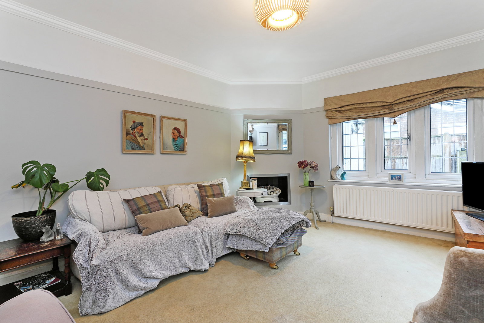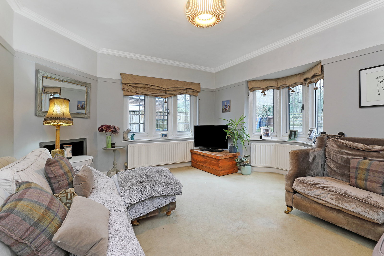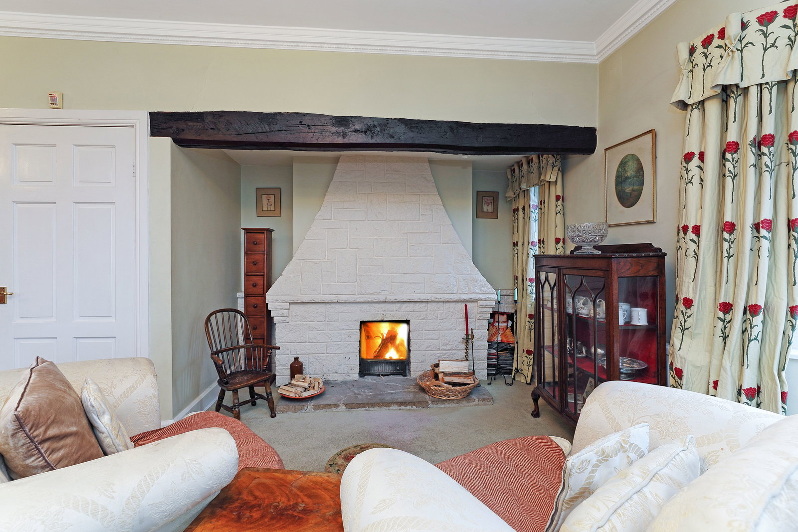 A generous main reception room with a dual aspect, enjoying views to both the front and rear. The room features a cosy open fire, making it ideal for entertaining and family gatherings.